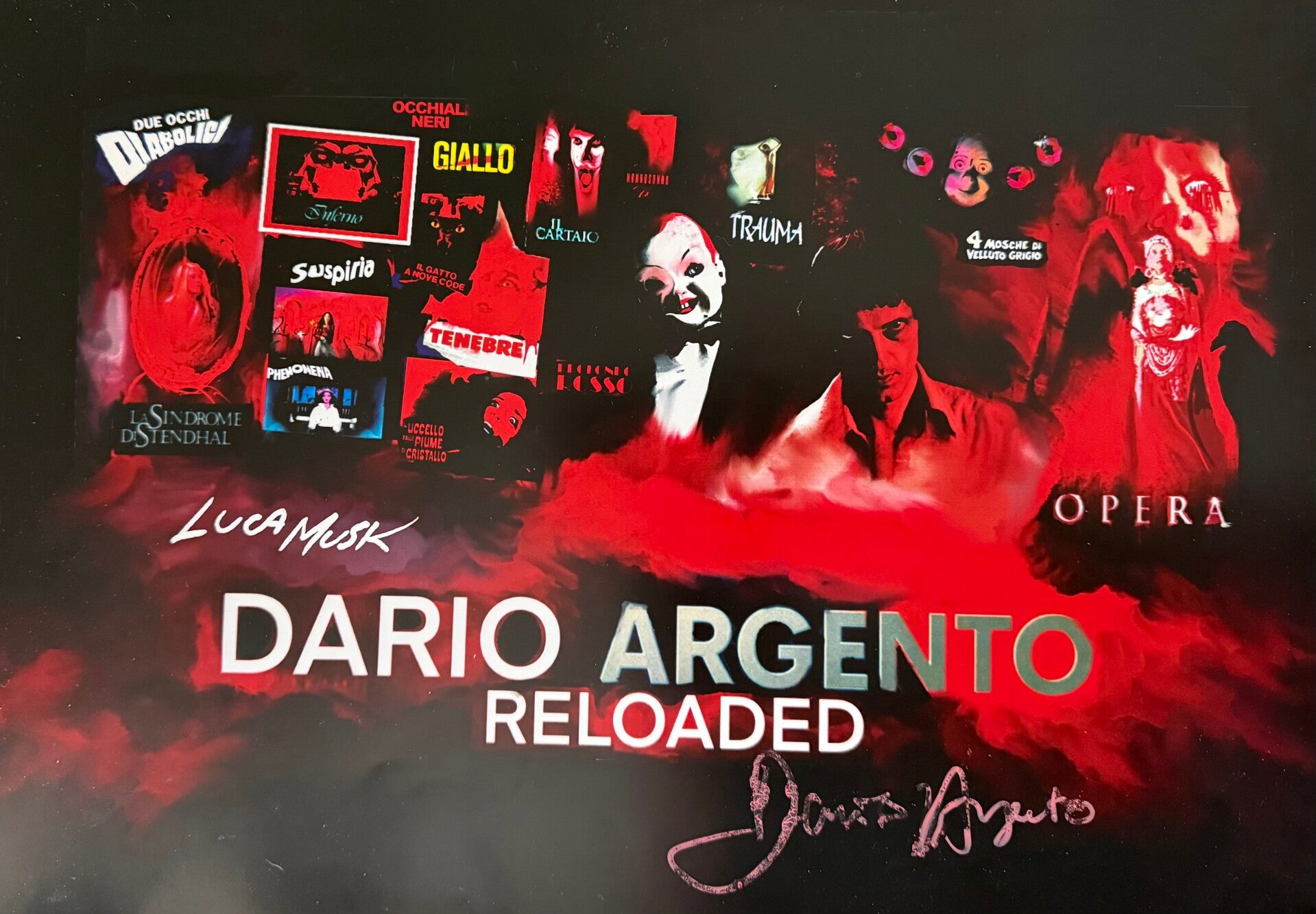 Un binomio del tutto originale quello al centro del progetto espositivo “Dario Argento reloaded”, che vede insieme le opere del movie concept artist Luca Musk (rielaborazioni grafiche di fotogrammi dei film di Argento), in collaborazione con Larosa Purpurea, e le foto di scena di Franco Bellomo scattate sul set di sei film argentiani, da Profondo rosso a La terza madre.